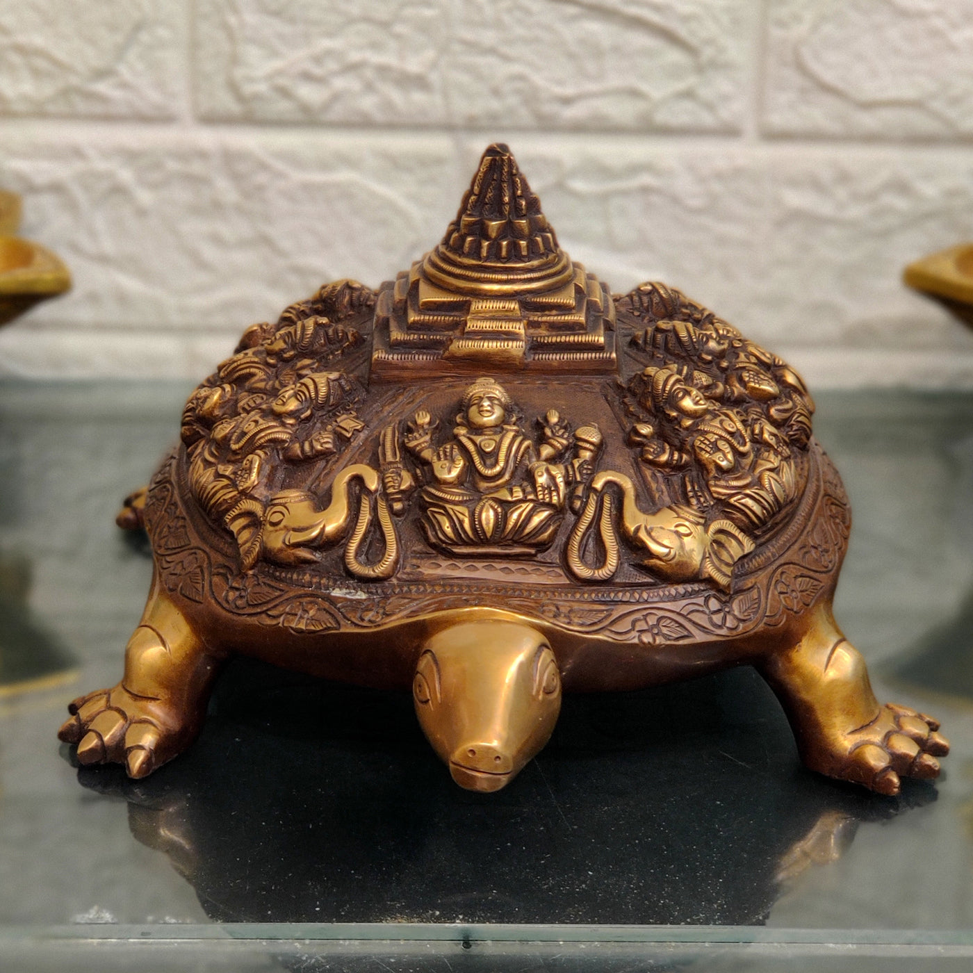 This Handcrafted Piece consists of eight forms of Goddess Lakshmi - Ashtalakshmi surrounding the lotus shaped Shree Yantra beautifully carved on a tortoise.