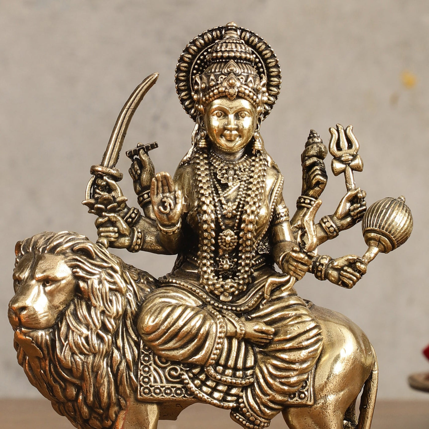 Explore our Pure Brass Superfine Durga on Lion Idol. Measuring 4 inches in