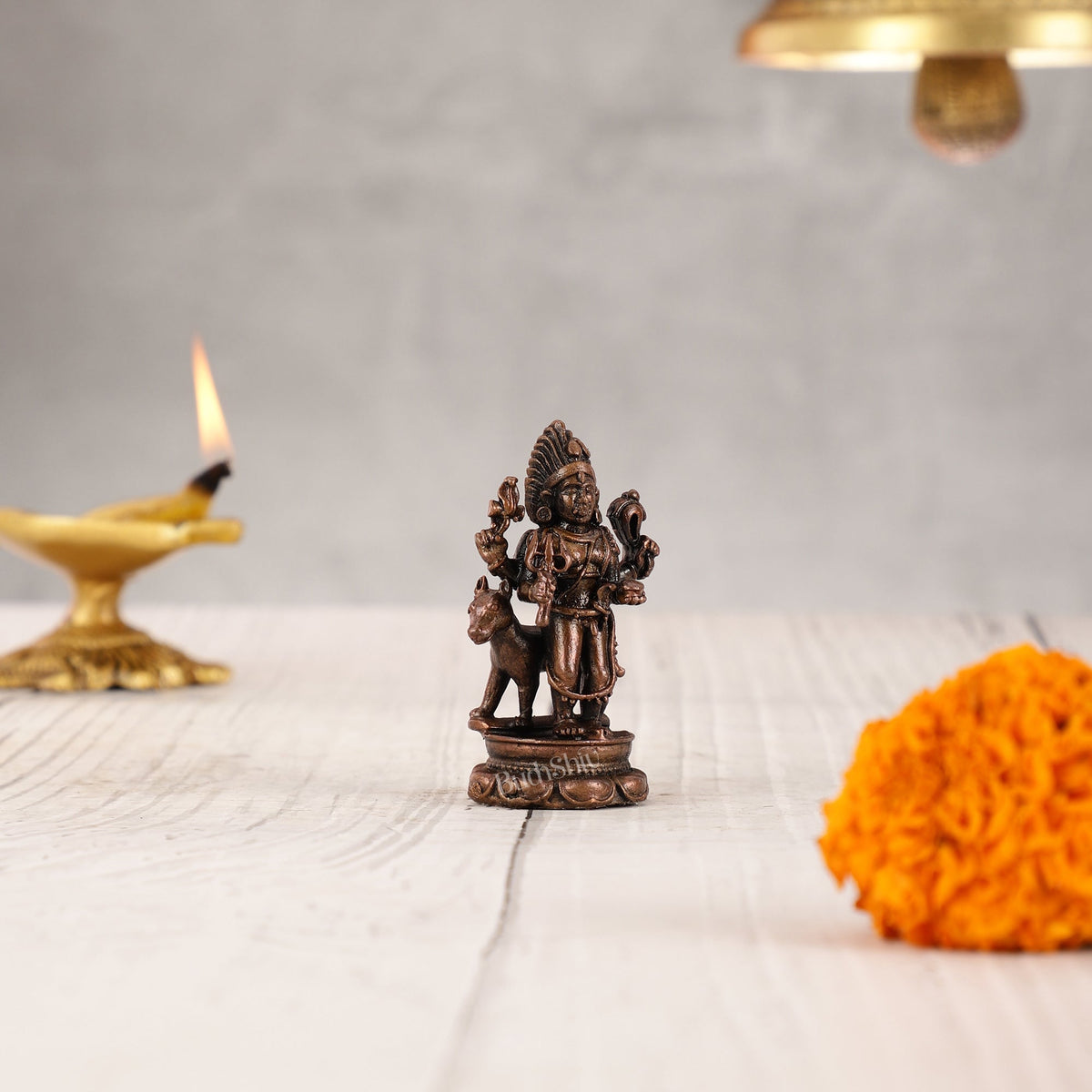 Embrace the protective presence of Pure Copper Kaal Bhairav Idol, standing at 2 inches with a