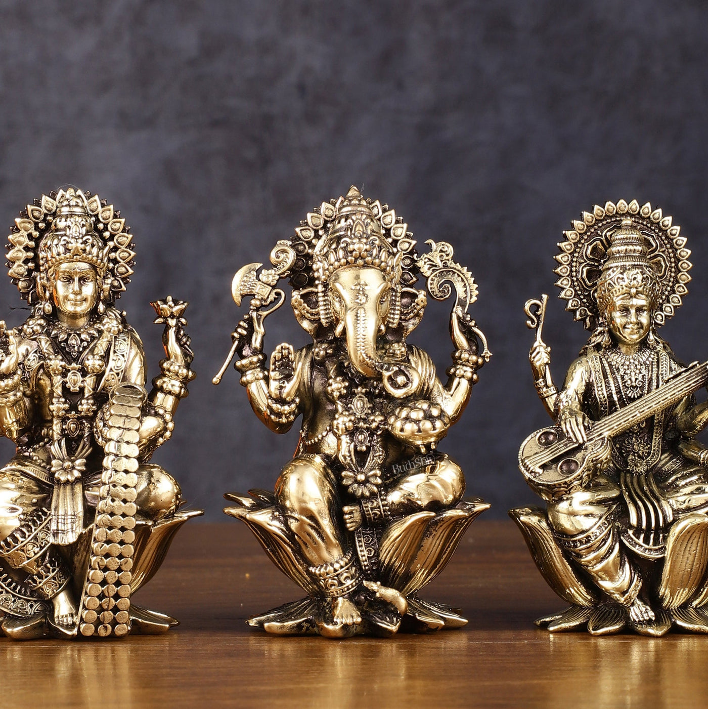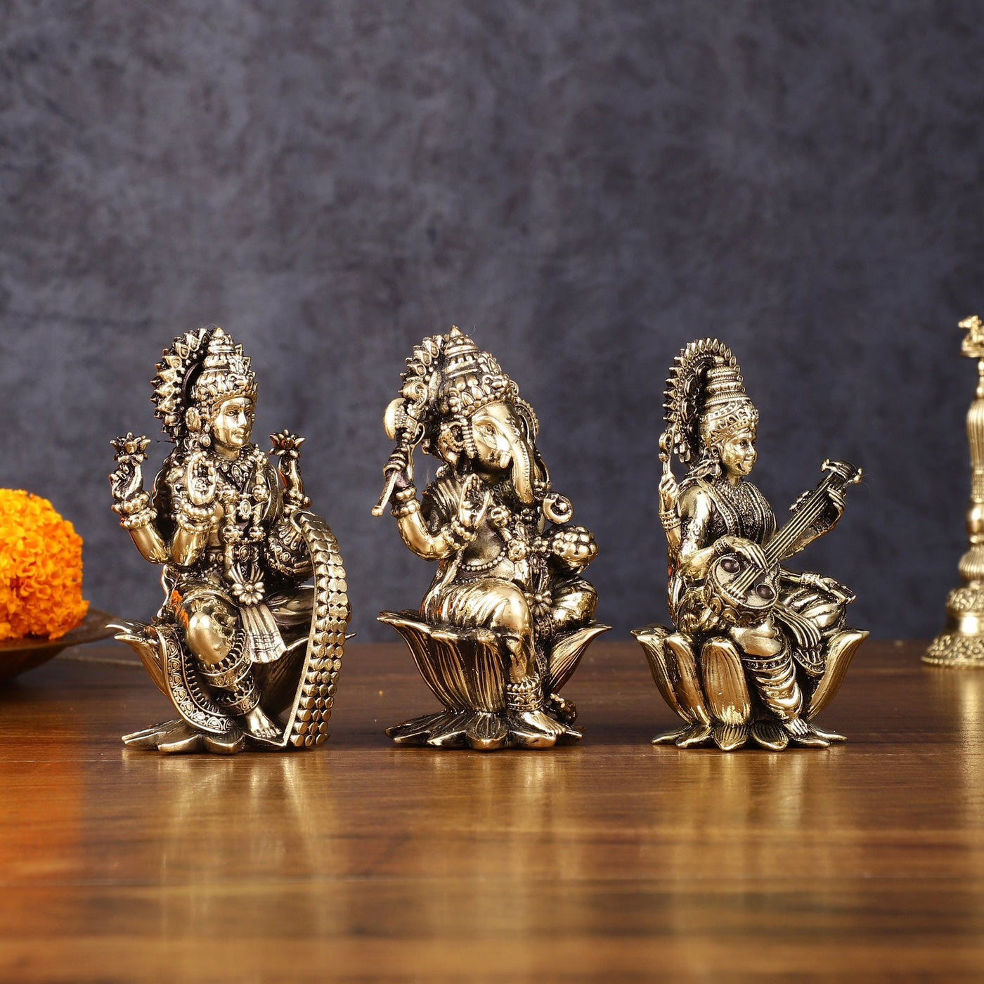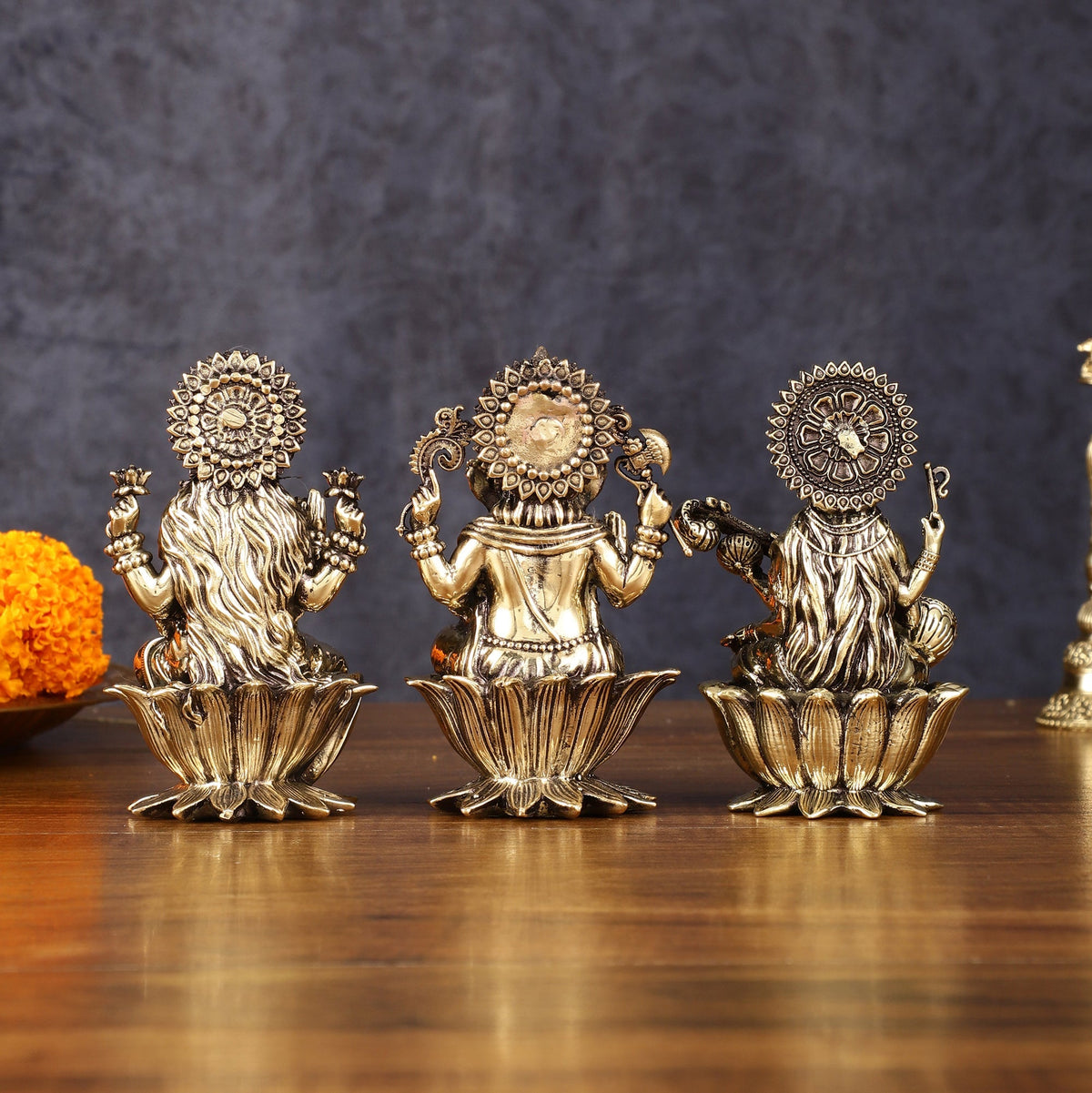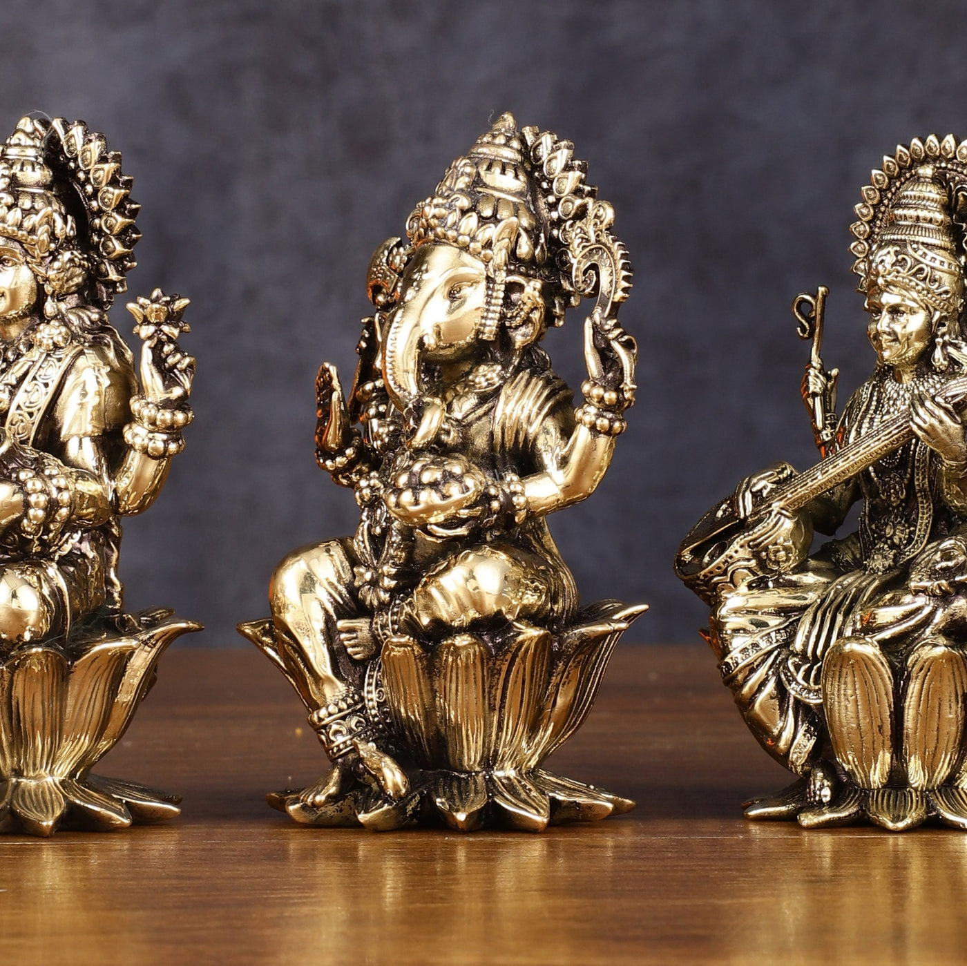Brass Superfine Ganesh Lakshmi Saraswati Idols - 4 Inch