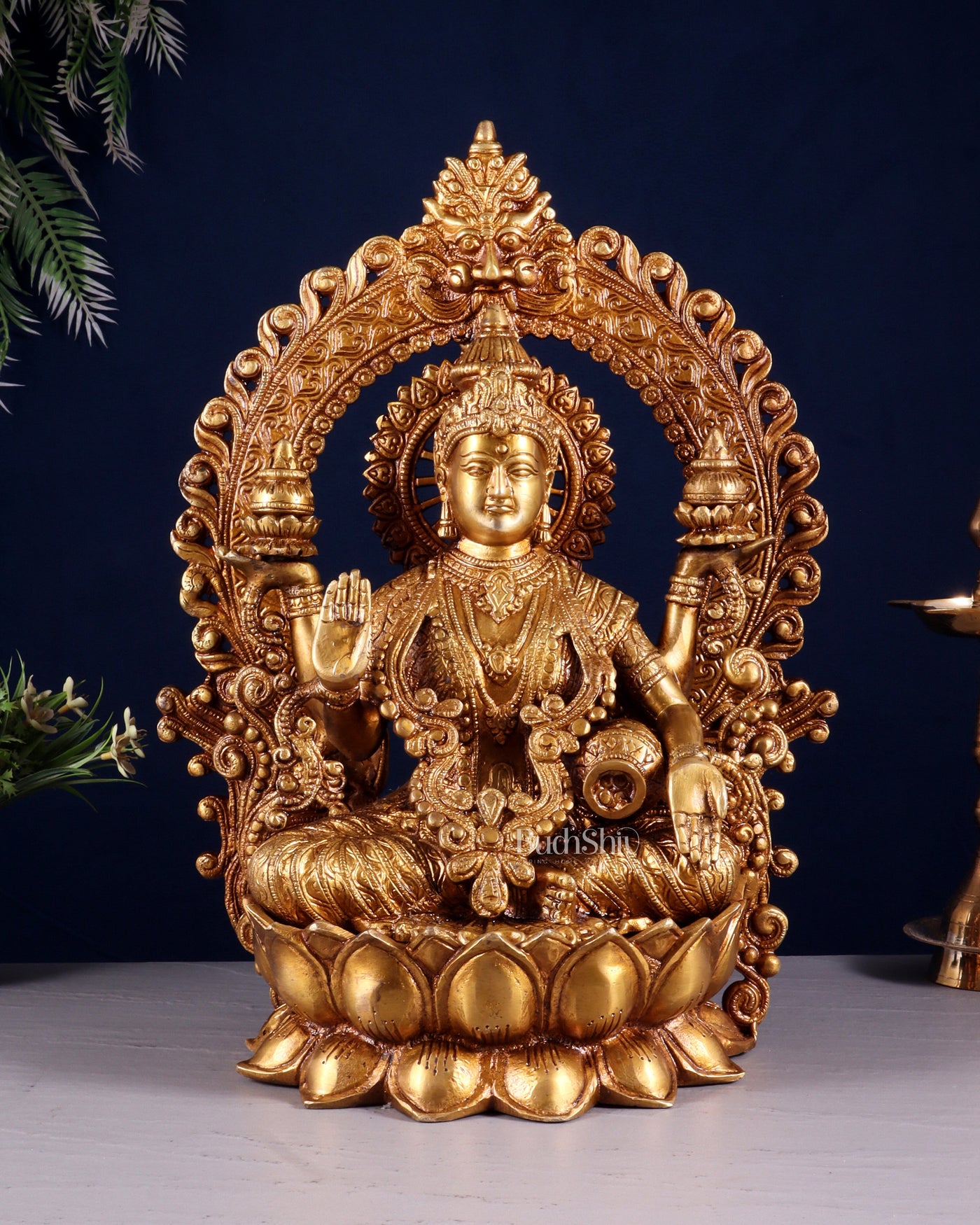 Pure Brass Goddess Lakshmi with Prabhavali Arch Statue - 15"