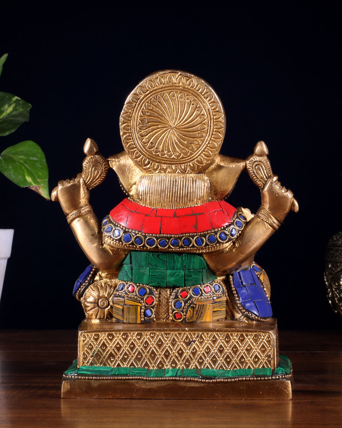 Brass Lord Ganesha Idol with Stonework | Height 7.5 inch