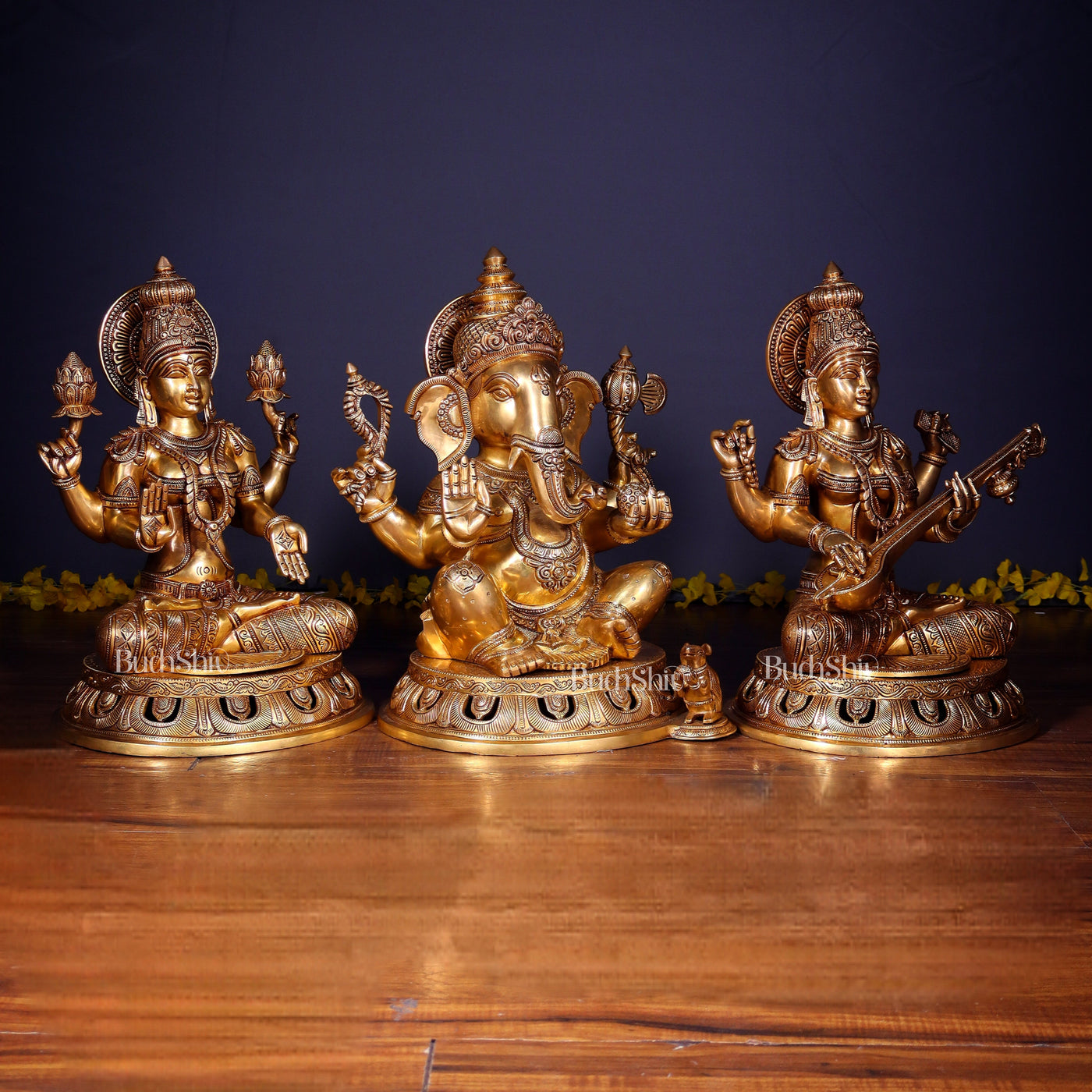 Brass Superfine Ganesh Lakshmi Saraswati Large Idol Set – Intricate Carvings 18" | 55 kg
