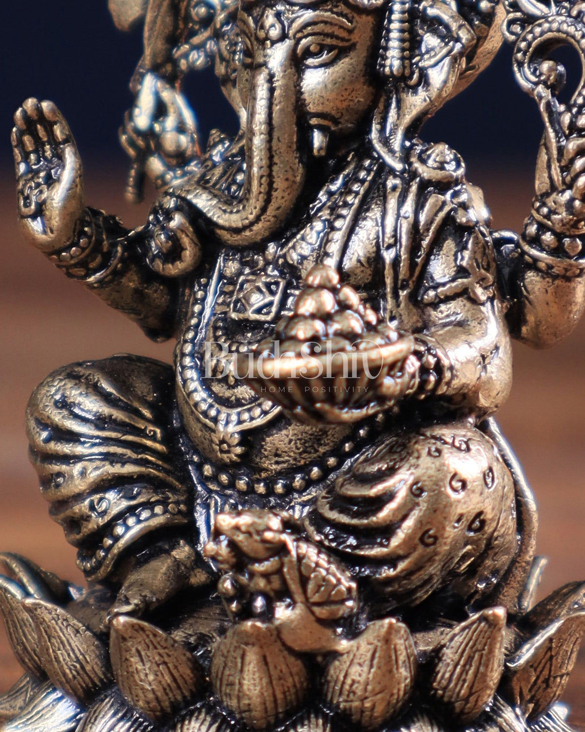 Lord Ganesha idol with Right-Side Trunk - Height: 3 inch (7.62 cm)Width: 2 inch (5.08 cm)Depth: 1.5 inch(3.81 cm) Weight: 120 grams.
