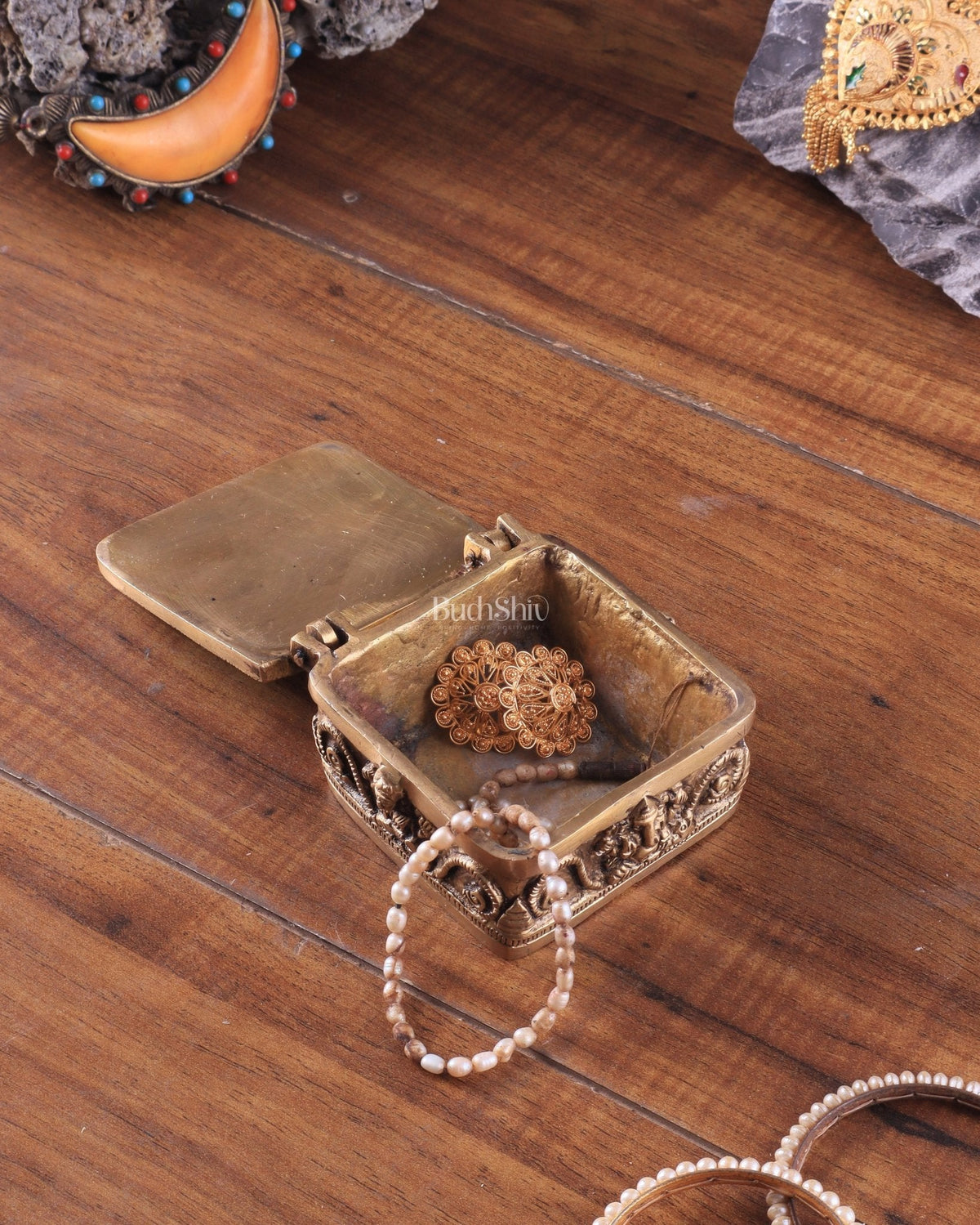 This unique Ganesha brass storage box is a blend of functionality and spirituality, making it an ideal home decor piece or a cherished gift for loved ones