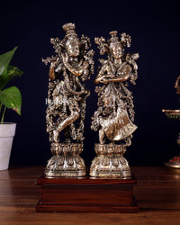 Brass Radha Krishna on Wooden Base – 9.5 inch Superfine Finish