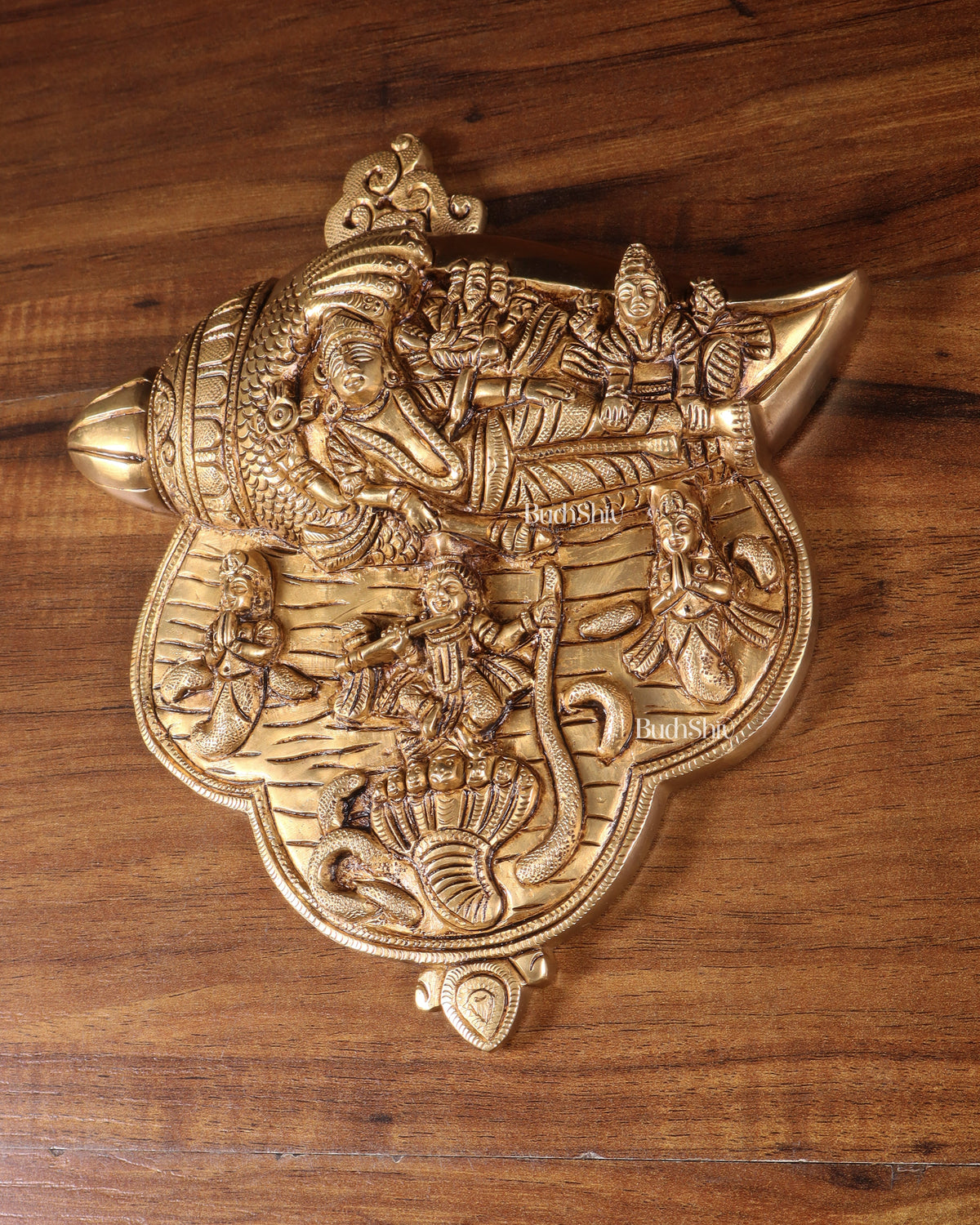 Pure Brass Lakshmi Narayana with Kalinga Krishna Carved on Shankh | Wall Hanging