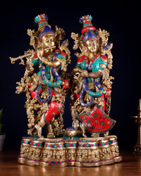 Pure Brass Radha Krishna statue meenakari Stonework– 29"