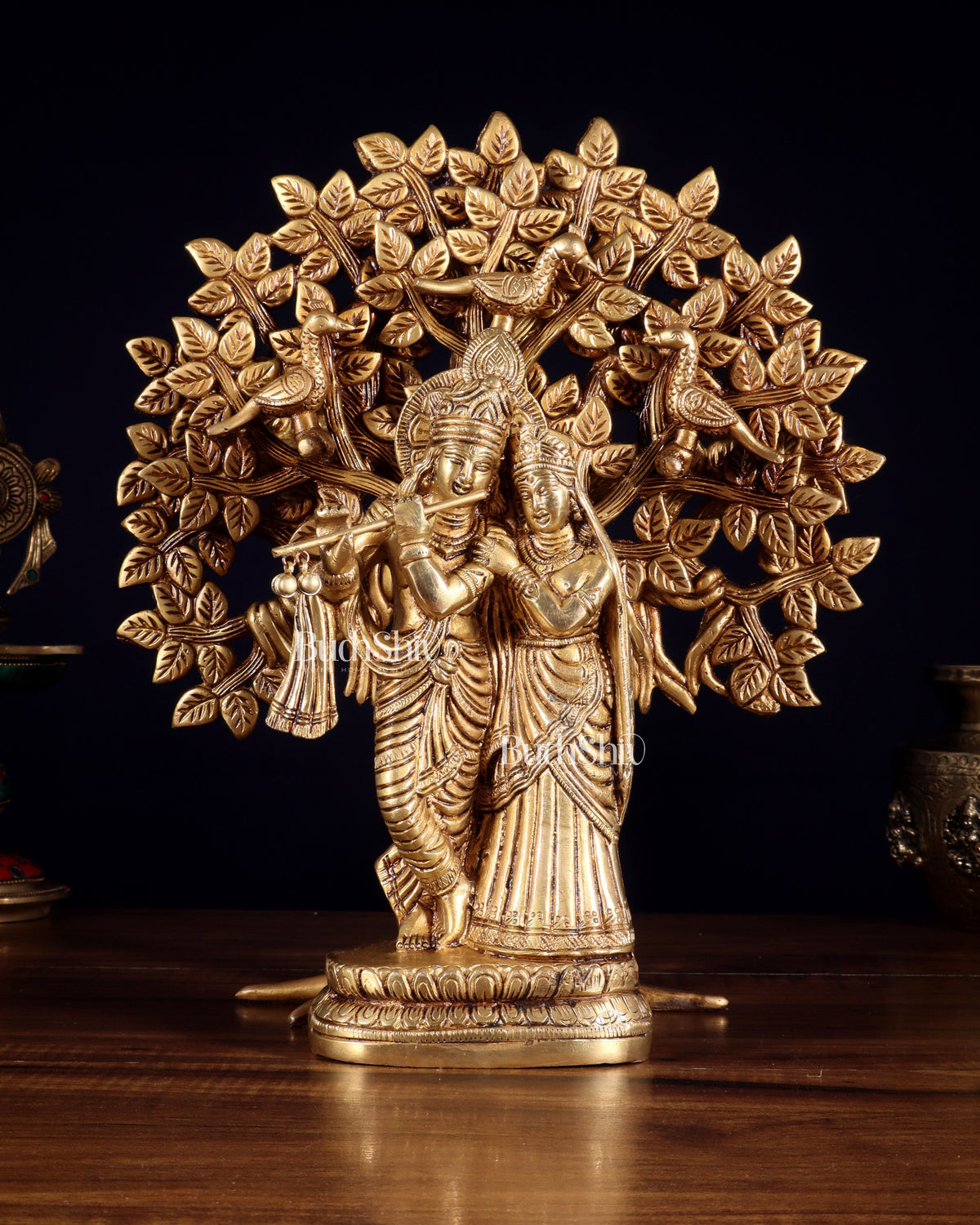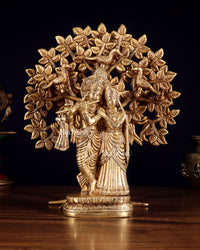 Pure Brass Radha Krishna idol paired with a Kalpavriksha tree.