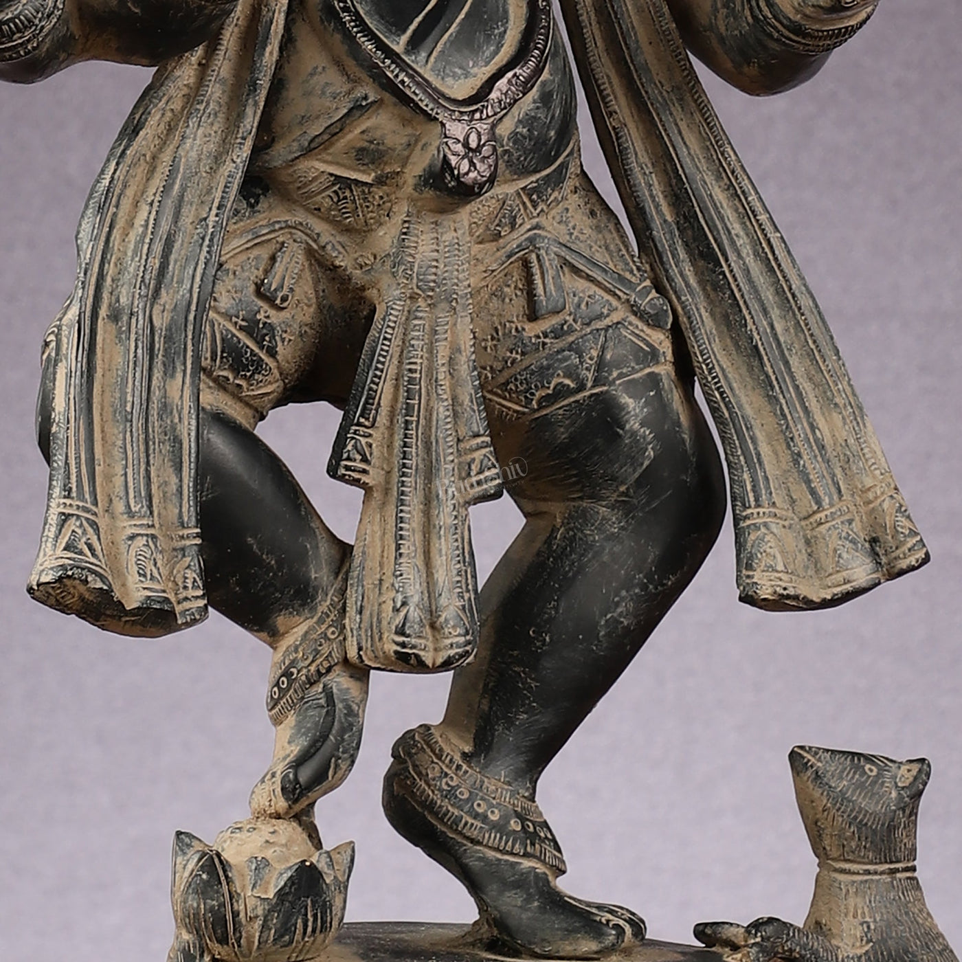 This beautiful brass statue depicts Lord Ganesha in his dancing form with five faces, also known as Panchmukhi Ganesha. The statue is intricately crafted with fine details and finished with black white sand look. The dancing posture of Ganesha is a symbol of joy, energy, and enthusiasm, making it a perfect addition to your home or office decor