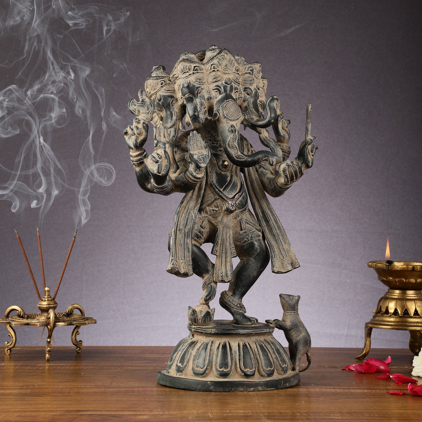 Brass Dancing Panchmukhi Ganesha Statue - 15 Inch Vintage sculpture